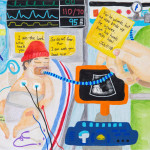 I drew this because I want to share how God has acted upon my life. When I was a baby, I had lung problems, and my parents were told I wouldn’t make it. My parents nevertheless continued to put their faith in God and prayed that I would be healed. One of the nurses put post-it notes with Bible verses written on them to help me in my struggle.