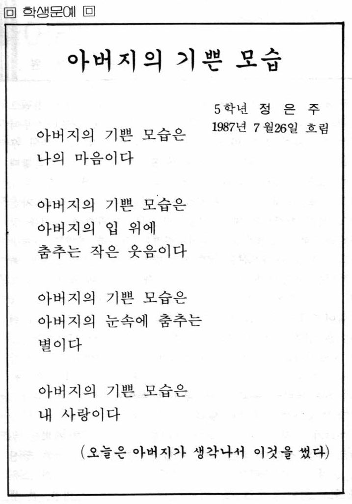 5 학년 정 은 주 1987년 7 월26일 흐림