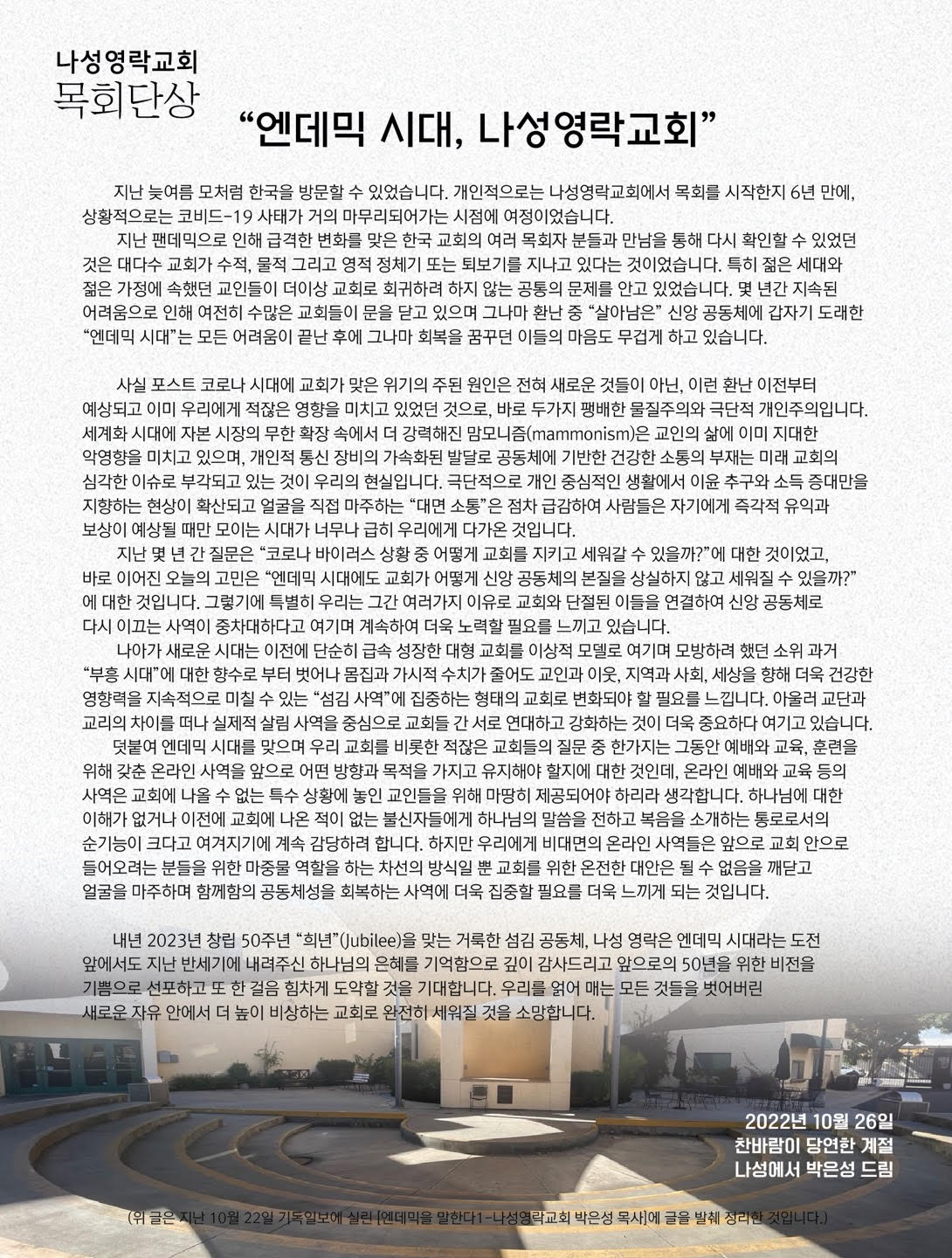 “엔데믹 시대, 나성영락교회”